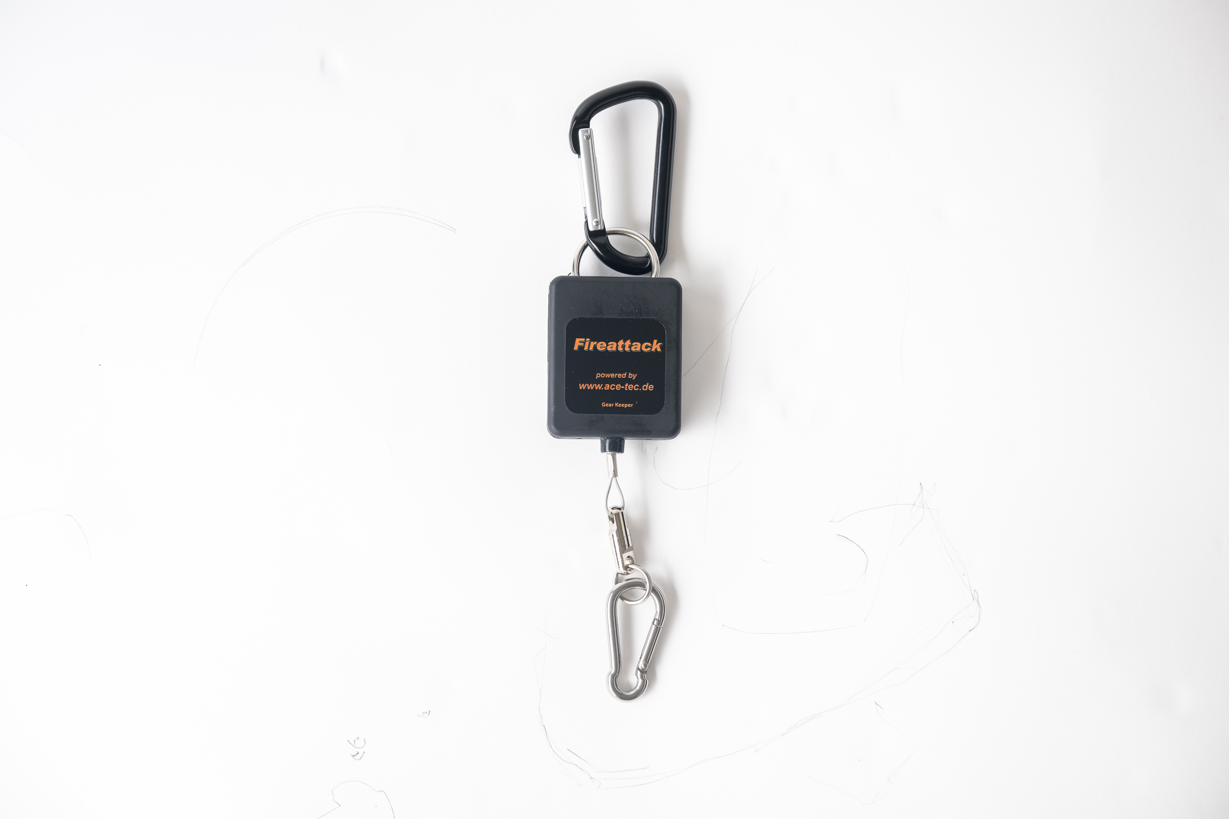 Rückhalter/Rückholer für größere Lasten z.B. Wärmebildkamera 2xStahl-Karabiner (1x mit Wirbel) / Kraft: 1.645Kg / Seillänge: 56cm