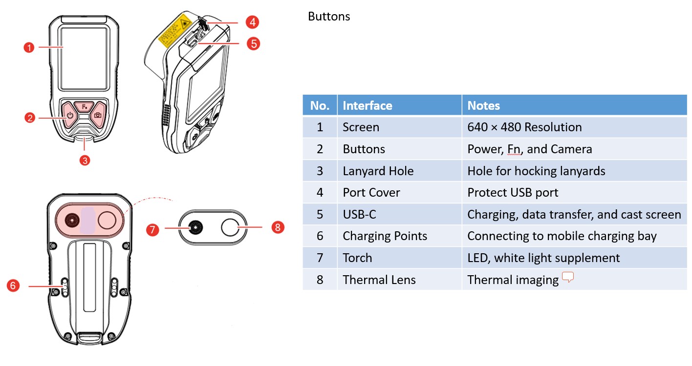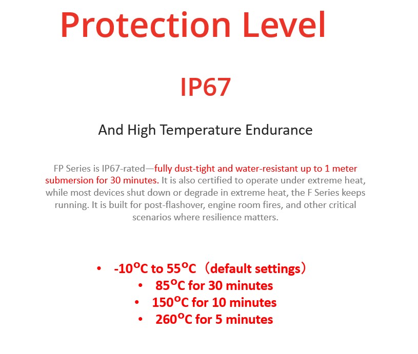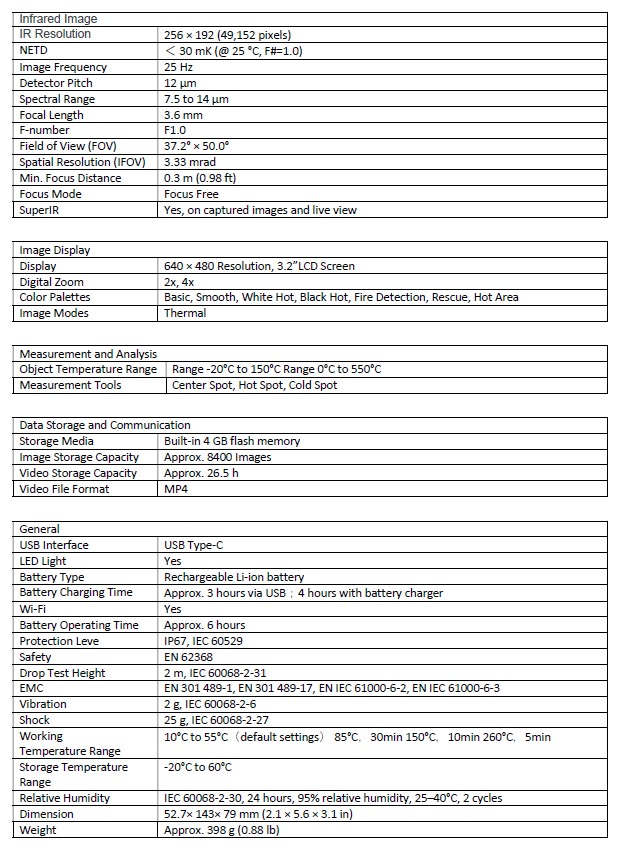 - · Modes Basic Fire, BW, WB, Smooth, Hot Area, Rescue, Fire Detection
